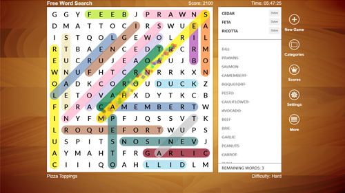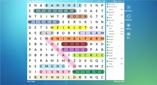- This Word Search updates offers 3 new fun word categories: Carnival, Fairy Tales and Mammals!